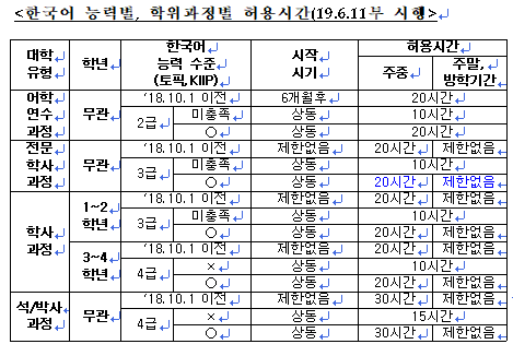한국인 역시 학업과 병행하면서 아르바이트를 할 수 있다는 점을 감안해서 처음부터 경제활동을 못하게 하는 것은 아닙니다. 실제로 학비 또는 체재비를 마련하는 명목으로 학업 이외의 시간을 할애하여 일하는 경우도 있으므로 외국인 유학생 아르바이트를 하기 위해서는 합법적으로 허가를 받으라는 취지로 해당 제도를 마련하고 있습니다.외국 국적의 학생이 일정 요건을 갖춘 경우 [체류자격 외 활동허가]를 받아 영리활동이 가능하며 학기 중 월~금요일 사이 주 20시간 범위 내에서 최대 2개 장소에서 아르바이트가 가능하며 공휴일 주말(토,일) 및 방학 중에는 시간 및 장소 제한 없이 할 수 있습니다.