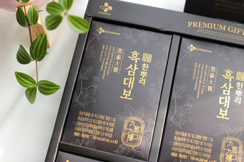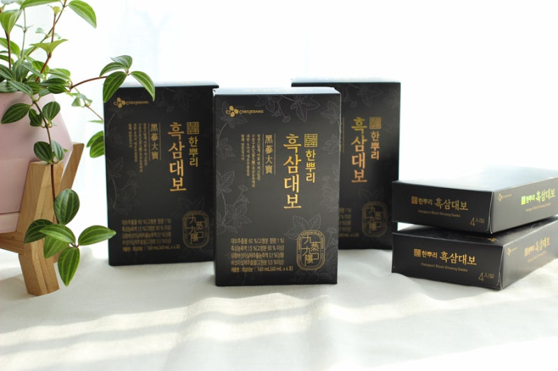 흑삼은 풍미가 깊고 흡수율도 높다고 하는데 흑삼은 구증구포 과정을 통해서 일반삼보다 진세노사이드가 (RG3, RG5, RK1) 13배나 많다고 합니다.진세노사이드는 인삼속 핵심성분인데 올해는 이걸 고르자! 결심했어요.그런데 이렇게 1+1 행사에서 얻으니까 뭔가 거만한 기분이 드는 거예요 이렇게 고급스러운 가방에 들어 있으니까 포장 안 하셔도 OK 엄마 아빠 두 분께 하나씩 드리면 딱 좋아요 ㅎㅎㅎ그런데 이렇게 1+1 행사에서 얻으니까 뭔가 거만한 기분이 드는 거예요 이렇게 고급스러운 가방에 들어 있으니까 포장 안 하셔도 OK 엄마 아빠 두 분께 하나씩 드리면 딱 좋아요 ㅎㅎㅎ집에 와서 자세히 살펴보니 고급스러운 무늬와 패키지가 꽤 마음에 드네요.어른들 선물할 때는 이런 패키지도 굉장히 중요하거든요.첫인상부터 잘 준비했구나~ 라는 느낌을 풍겨야 하니까요 :-)CJ한풀이흑삼대보는 인삼을 9회 쪄서 말린다구증구포 과정을 거쳤을 뿐만 아니라 여기에 백출, 복령, 당귀, 천궁숙지황, 작약, 황초, 감초 총 9가지 건강소재를 첨가하여 건강을 유지할 수 있습니다.한 번 끓여서 추출한 추출액이 아니라 카메소 구포 흑삼을 다시 농축한 농축액입니다.그래서 흑삼의 진함을 그대로 느끼실 수 있어요~작은 상자 하나에 4포씩 총 6박스가 들어있습니다.하루에 한 포씩 가져가시면 되는데 휴대하기 편한 파우치라서 언제 어디서나 간편하게 드실 수 있을 것 같아요.한 포를 개봉하여 컵에 따라보니 진한 향기가 풍겨왔습니다.감초가 들어가 달콤한 맛도 느낄 수 있어 부담없이 먹을 수 있는 맛입니다.홍삼제품을 쭉 드셨던 부모님이시니 흑삼대보의 진한 향과 맛을 느껴보시면 무척 좋아하실거에요 :-)저는 여러 홍삼제품을 먹어봤는데 건강을 위해서 고르는 제품은 아무래도 대기업 제품을 선택하는 편이거든요.생산라인도 신뢰할 수 있고 원재료와 품질관리까지 꼼꼼히 하고 있으니 안심하고 드실 수 있으니까요!CJ한뿌리흑삼대보 역시 그냥 국내산 인삼을 사용하고 잔류농약검사, 미생물검사, 중금속검사 등 품질관리를 위한 다양한 검사도 하고 철저한 기준을 통과한 인삼만 사용한다고 합니다. 그렇게 선별한 인삼을 9번 쪄서 말리는 과정을 반복해서 만든다고 하니까 그 정성이 보통은 아니죠?CJ한풀이 흑삼대보의 정성만큼 올해도 무사히 건강하시길 바랍니다.이제 코앞에 다가온 설 연휴에 부모님 혹은 친지 선물로 건강을 위한 홍삼 제품을 고르시는 분들 많으시죠?올해는 CJ한풀이 흑삼대보로 고급스러움까지 가져보는 건 어떨까요!현재 홈플러스청나점에서는 1+1 판매중이니 더 저렴하게 구매하실 수 있어요 🙂 온라인 구매는 아래에서 확인해주세요![2020 설 선물세트]한뿌리 검정삼대보[2020설날선물세트]한뿌리 흑삼대보 | CJ제일제당 가정간편식 전문몰 CJ THE MARKETwww.cjthemarket.com본 포스팅을 작성하기 위해 CJ제일제당으로부터 소정의 원고료를 지급받았습니다.